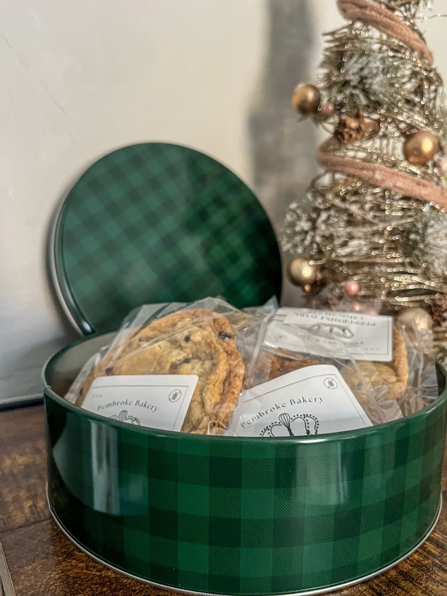 Consider this your invitation to unwrap a little joy. Our festive Holiday Cookie Tin arrives dressed for the season and filled with 12 assorted Pembroke cookies , each one baked with thoughtful sourcing and the cozy-warm spirit of Pembroke in December.